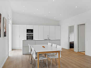 Det kæmpe køkken-alrum skaber rammerne for hyggelige måltider og sociale sammenkomster. Udsigten over søen tilføjer en ekstra dimension til oplevelsen af at samles omkring bordet. Med 3 soveværelser og 6 sovepladser er der rigelig plads til hele familien eller en gruppe af venner.