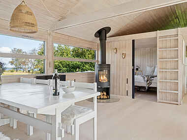 Oplev autentisk dansk sommerhygge i dette lyse sommerhus kun 100 meter fra vandkanten. Arkitekttegnet af norske Turid Haaland med panoramaudsigt til fjord og skov gennem vinduer hele vejen rundt.