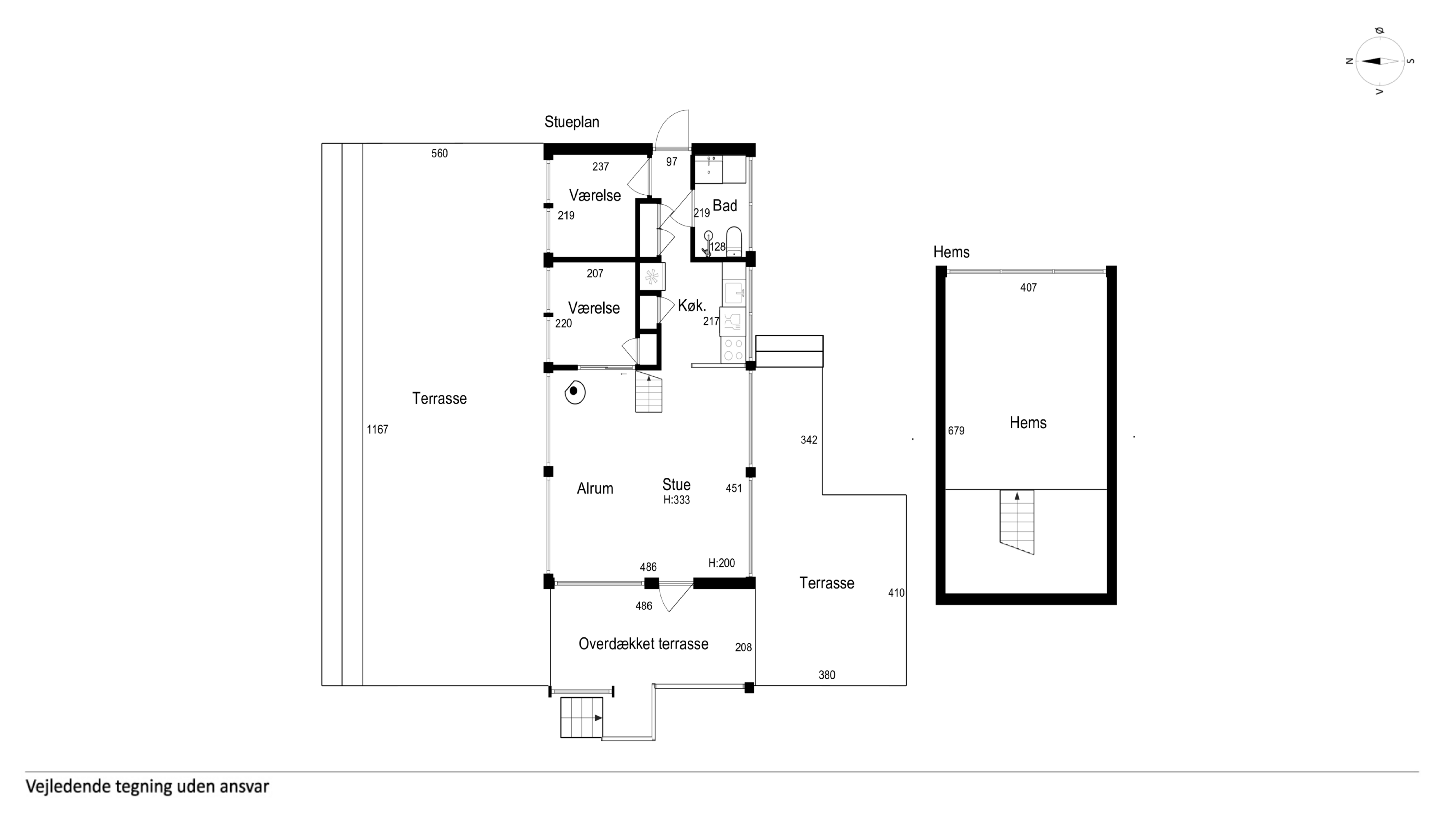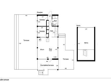 ○ Hems: Dobbeltseng (180 cm) tilgængelig fra stue