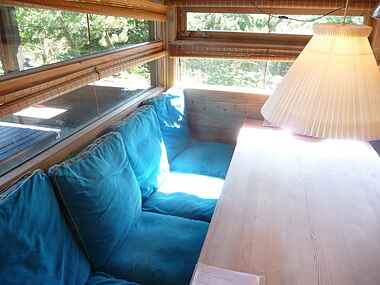 Huset er 60 m² og har tre soveværelser med i alt seks sovepladser. Indretningen er funktionel og hjemlig med internet, brændeovn og et åbent opholdsrum, hvor man kan samle sig om måltider eller afslapning efter en dag ved vandet. Stuen vender mod mosen og får masser af dagslys.