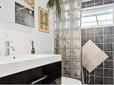 Fra stuen fører en dør ud til en overdækket terrasse, der inviterer til afslappende øjeblikke udendørs. Denne stue smelter elegant sammen med det delvist åbne køkken, hvorfra man kan nå et praktisk disponibelt rum udstyret med en vaskemaskine. Soveværelserne tilbyder komfortabelt ophold med to rummelige dobbeltsenge og en enkeltseng, ideel til familier eller venner på ferie.