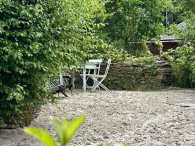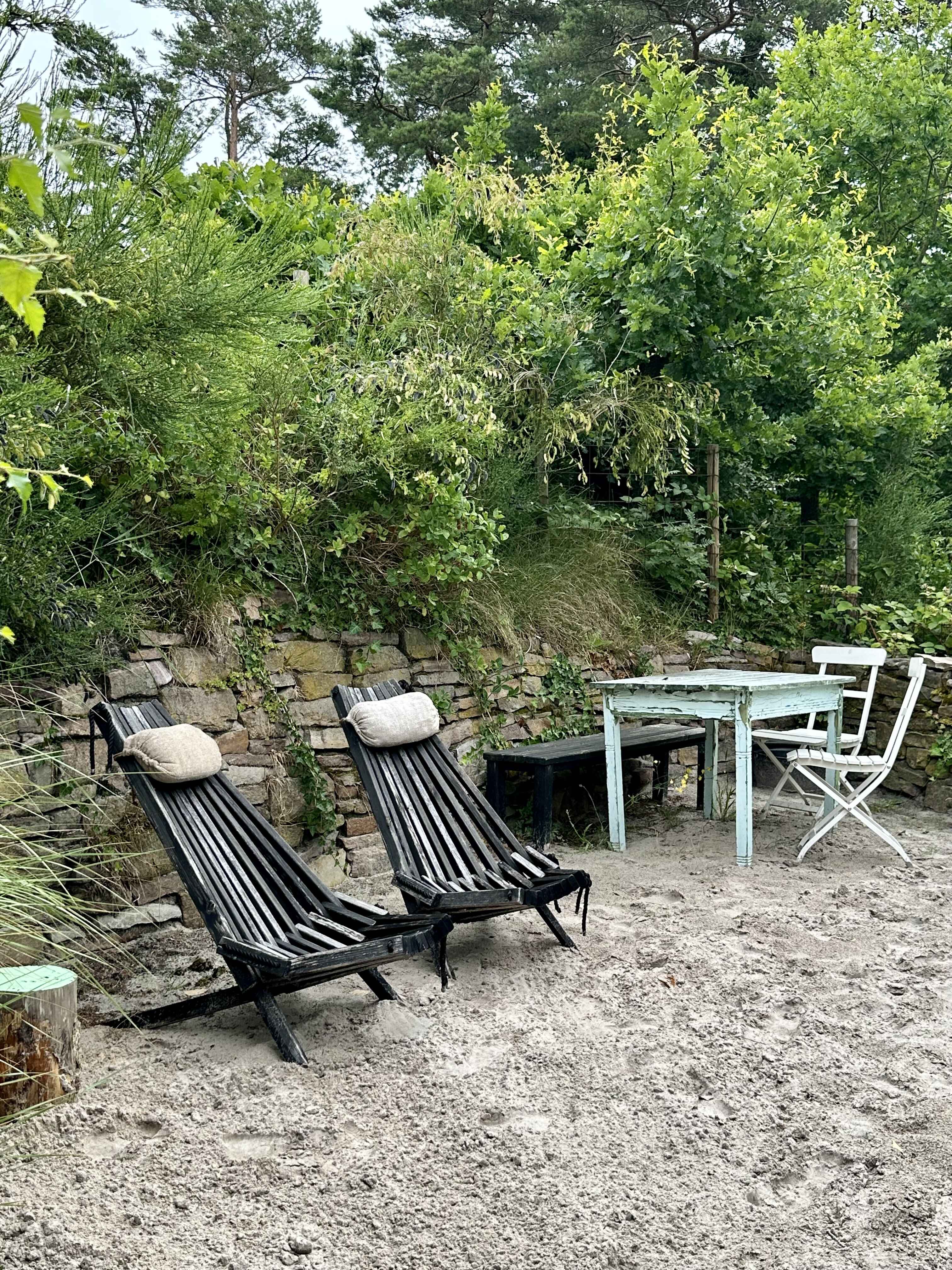 Også udenfor imponerer huset. Her er en dejlig, delvist overdækket træterrasse til rådighed, som er udstyret med diverse havemøbler samt en grill, så I kan afslutte en eller flere skønne feriedage med en hyggelig grillaften. Huset ligger på en indhegnet, sandrig grund, der giver fornemmelsen af at være på stranden, og som tillader børnene at lege med sand. Her er også et hyggeligt bålsted samt en udebruser til at skylle sandet af sig.