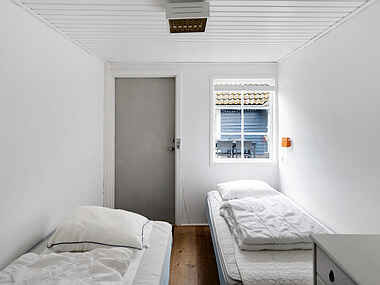 Hovedhuset omfavner sine gæster med intime omgivelser og en beroligende atmosfære. Det rummelige soveværelse er en oase af ro og komfort, mens de to sovepladser på første sal tilbyder en privat indgang via en udvendig trappe. Indkvarteringen byder på 4 enkeltsenge. To af dem er permanent forbundet, mens de to på loftet kan sættes sammen efter behov. Et badeværelse og toilet i hovedhuset sikrer bekvemmelighed og funktionalitet.