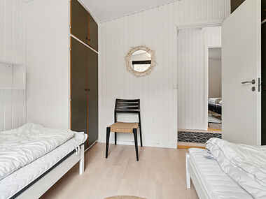 Dette sommerhus på 89 m² er en ideel base for en ferie i naturskønne omgivelser. Huset er 2 delt, med en opholdsafdeling og en soveafdeling. Huset har tre soveværelser med plads til op til seks personer.