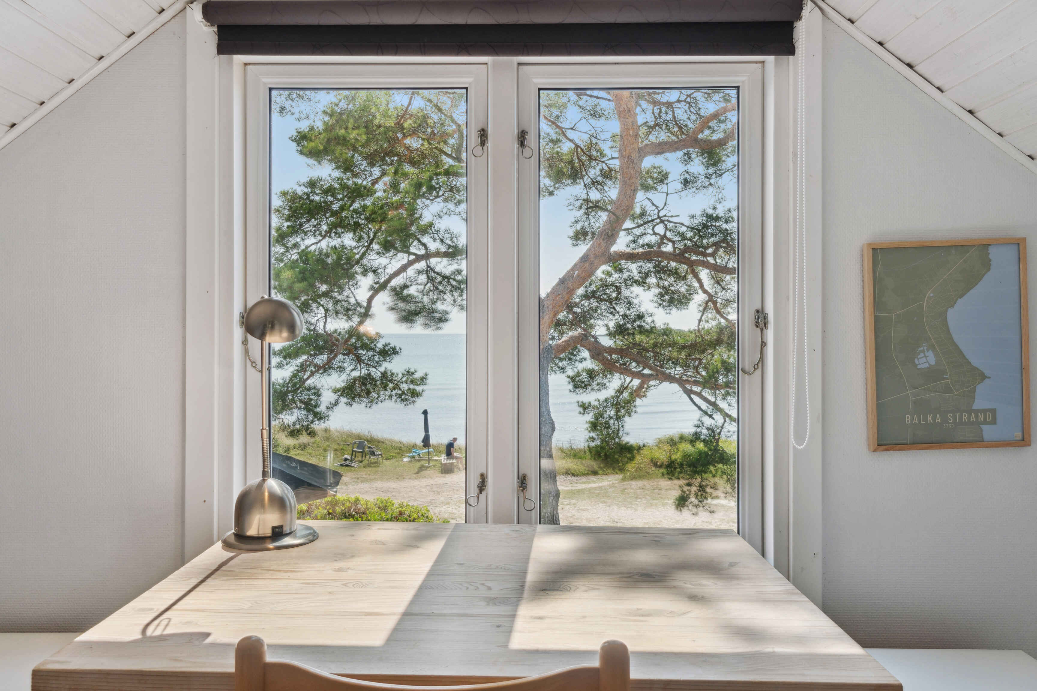 Et særdeles velindrettet sommerhus med fokus på udsigt og lysindfald. Den store lyse stue med spisekrog og det åbne funktionelle køkken er husets hyggelige samlingssted, hvor panoramavinduerne gør det muligt, at nyde udsigten over Balka Strand og bugten. Der er udgang til den store terrasse fra stuen og til den lukkede gård fra køkkenet. I stueplan er der et dejligt soveværelse med dobbeltseng samt badeværelse med toilet, bruseniche og spa. Via den gode trappe til første sal kommer du til de to soveværelser med enkeltsenge samt det ekstra toilet. Alt i alt er godt hus til en gode ferie og så er det derudover handicapvenligt i stueetagen.