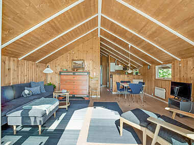 Sommerhuset er udstyret med bekvemmelige faciliteter, der gør dit ophold behageligt. Det fuldt udstyrede køkken giver dig mulighed for at tilberede lækre måltider, og den hyggelige stue er et perfekt sted at slappe af og nyde tiden sammen med familie og venner. Udenfor finder du en stor terrasse med havemøbler, hvor du kan hygge og nyde udendørs liv.