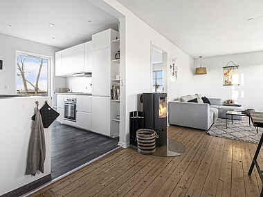 Dette sommerhus byder på komfortable omgivelser med tre dejlige værelser, hver udstyret med en hyggelig dobbeltseng. Her er plads til op til seks personer, der kan nyde de smukke omgivelser. Det åbne køkken inviterer til madlavning og hyggelige stunder, mens flere terrasser i forskellige niveauer er perfekte til grillfester og forundring over solnedgangen over de grønne marker. Badeværelserne er veludstyrede, med et i kælderen og et andet ovenpå.