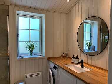 Huset er fra august 2021 og indrettet i lys og let sommerhusstil. Huset indeholder stor, lys stue med loft til kip, åbent køkken og skøn udsigt over vandet. 2 soveværelser med kontinentalsenge (dobbeltsenge 180×200) og 1 soveværelse med 2 enkeltsenge (80×200). Badeværelse med gulvvarme, brusekabine og vaskemaskine.