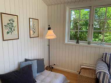 Huset er fra august 2021 og indrettet i lys og let sommerhusstil. Huset indeholder stor, lys stue med loft til kip, åbent køkken og skøn udsigt over vandet. 2 soveværelser med kontinentalsenge (dobbeltsenge 180×200) og 1 soveværelse med 2 enkeltsenge (80×200). Badeværelse med gulvvarme, brusekabine og vaskemaskine.