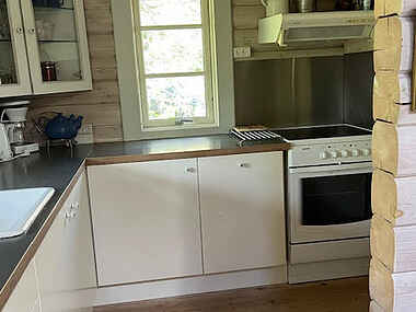 I Sorthat/Muleby finder I denne charmerende bjælkehytte med græstag, opført i kvalitetstræ med fokus på fine detaljer. Sommerhuset har et åbent køkken i forbindelse med en rummelig opholds- og spisestue. Indvendigt er væggene holdt i lyst træ, hvilket skaber en hyggelig og indbydende atmosfære. Ovenpå er der en stor hems, perfekt til leg og afslapning for både børn og voksne.
