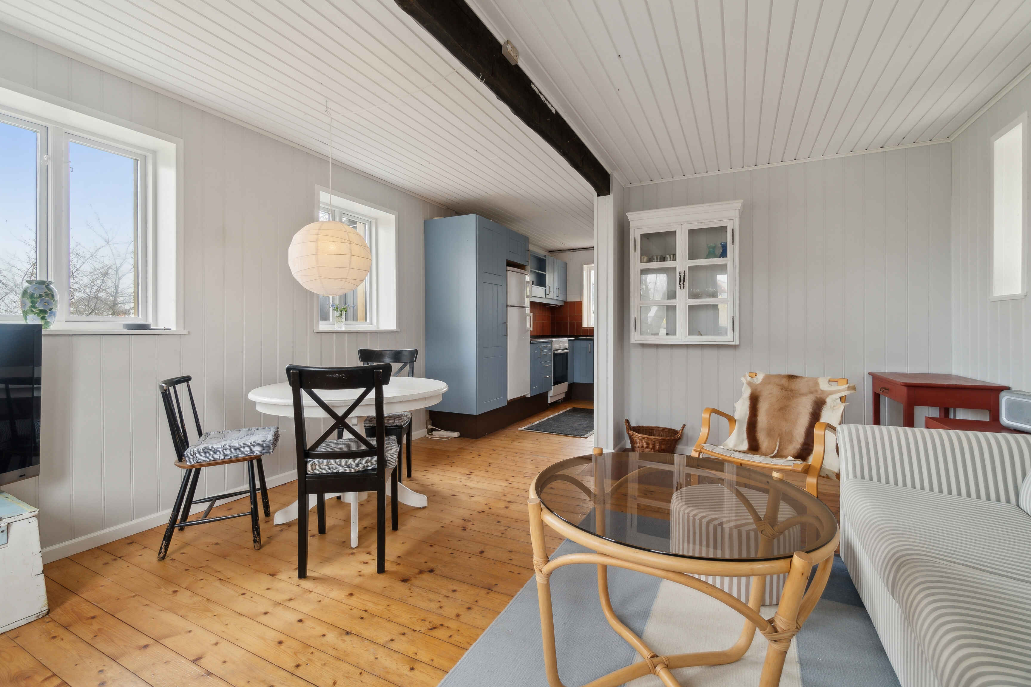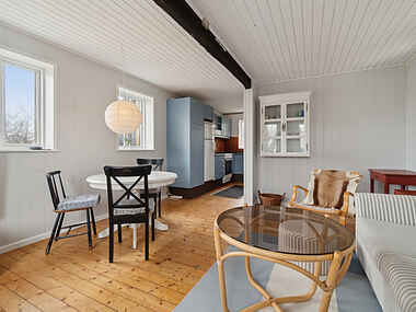 Sommerhuset er nyrenoveret og moderne indrettet med alle bekvemmeligheder, herunder internet og opvaskemaskine, som gør ferien endnu mere afslappende og komfortabel. Huset har to soveværelser med dobbeltsenge på første-etagen (barneseng i det ene), et værelse med en enkeltseng og en stor hyggelig stue med fladskærms TV (Chromecast og HDMI), hvor alle kan være sidde sammen. I stue-etagen finder i et stort køkken med alt, der hører til samt hyggelige siddepladser og udgang til en morgenmadsterrasse. Rundt om hjørnet fra køkkenet er spisestuen beliggende, hvor alle kan nyde en middag foran pejsen. Fra spisestuen er der udgang til en stor terrasse, hvor man kan grille og nyde gode sommeraftener. I stue-etagen finder I også et større badeværelse med gulvvarme og det sidste værelse der har en dobbeltseng (120cm) med en køje ovenover, hvor en 8. person/barn vil kunne sove.