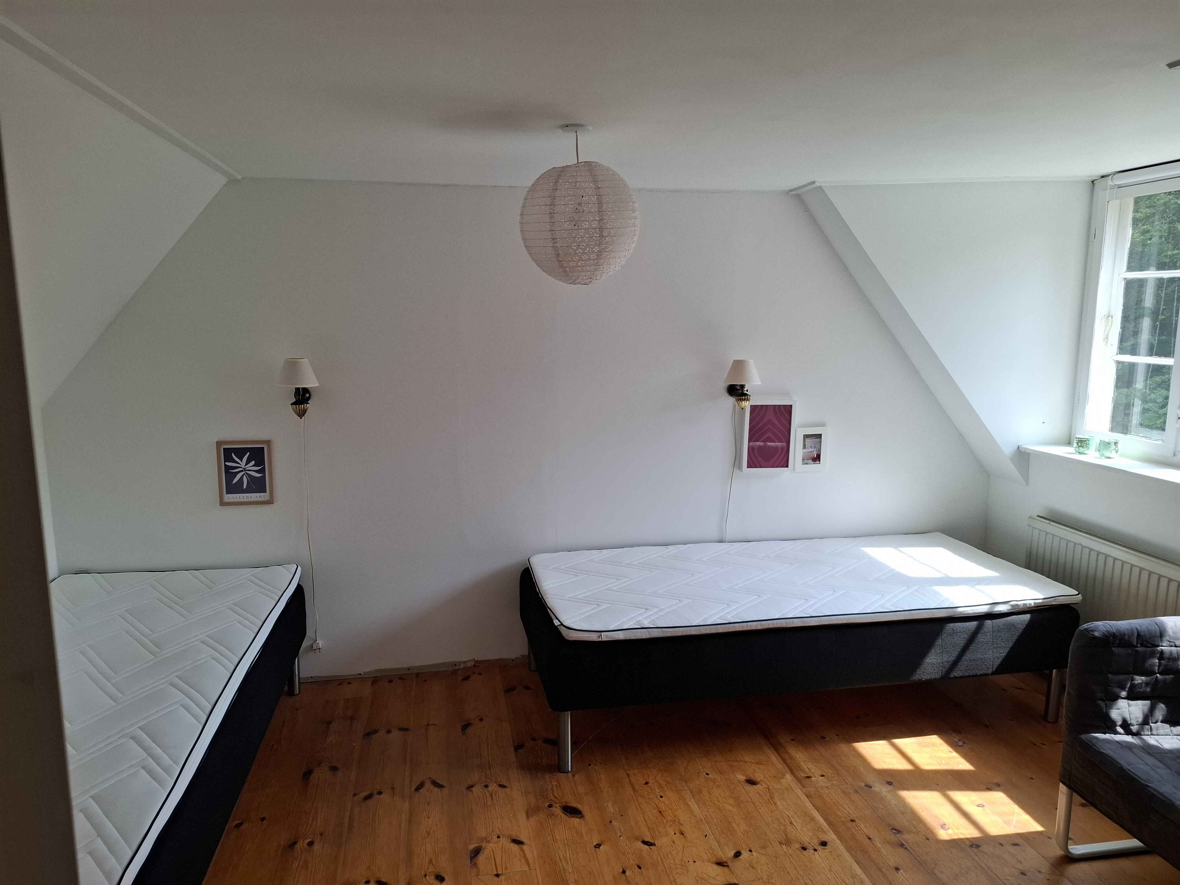 På 1. sal er der 2 gode værelser med en fordelingsgang imellem.