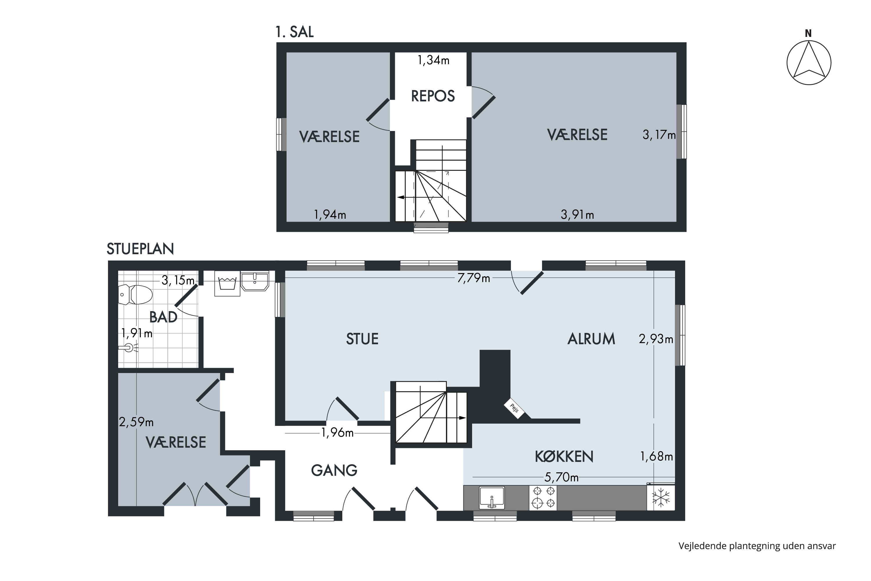 Boligen åbner sig med et indbydende køkken og badeværelse, videre til en rummelig spisestue og en hyggelig dagligstue, der inviterer til afslapning og samvær. Huset byder på tre stilfulde soveværelser, hver med sin egen unikke atmosfære og ægte Bornholmsk charme.