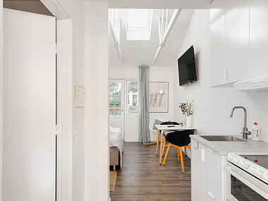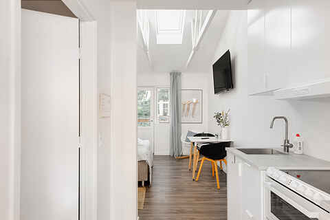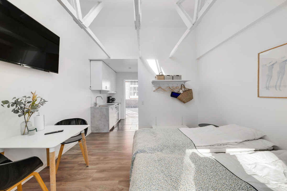 I dag er værelserne lavet om til små nyrenoverede lejligheder med eget badeværelse og eget køkken.