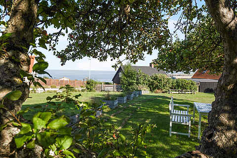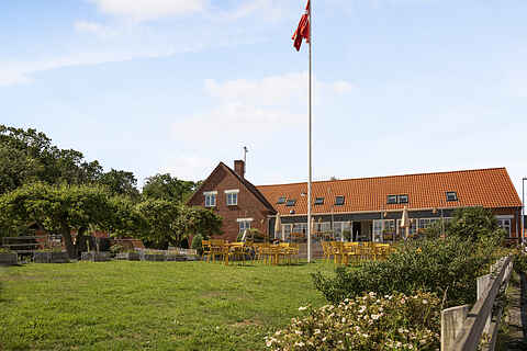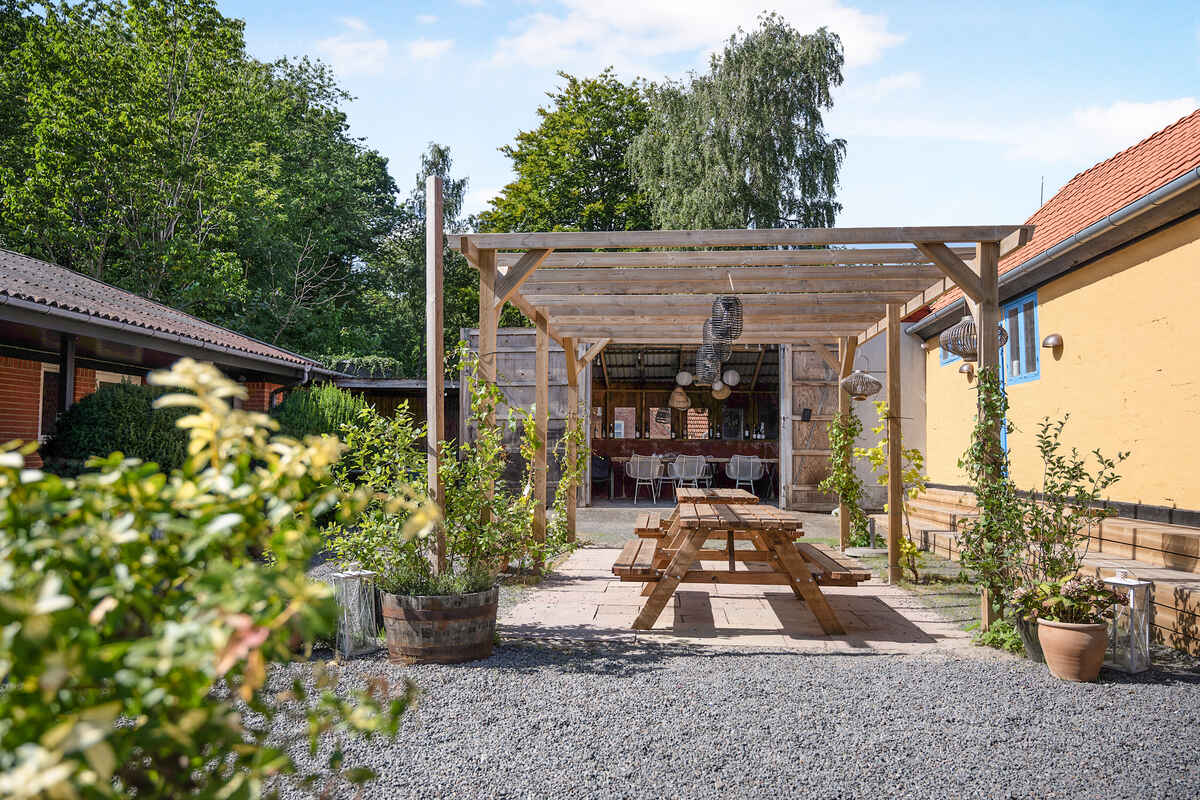 Stedet har et virkelig hyggeligt miljø på gårdspladsen, med en spiselade og stor bålplads.