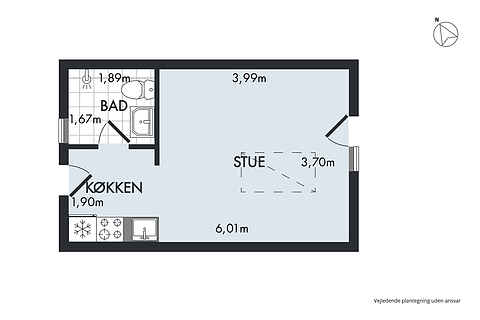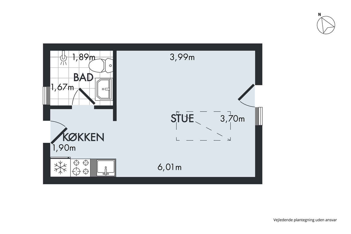 Boligen rummer et soveværelse og to sovepladser. Perfekt til parret eller den lille familie.