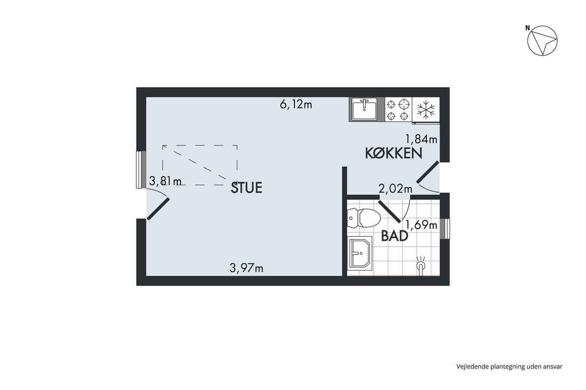 Boligen rummer et soveværelse og to sovepladser. Perfekt til parret eller den lille familie.