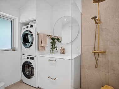 Huset har en åben og behagelig indretning i moderne stil med brug af naturmaterialer og gode indfaldsvinkler til sollyset. Opholdsrummet er et hyggeligt sted at samles om måltiderne, spilaftener eller et glas rødvin, mens I kan kigge ud til haven.
