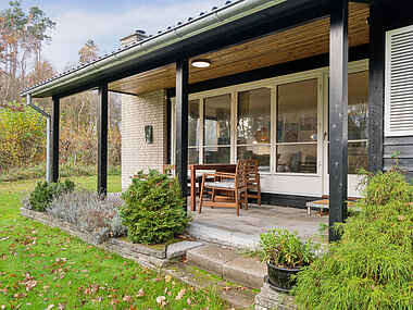 Udendørs venter en stor grund omgivet af træer, som skaber privatliv og mulighed for afslappede dage med aktiviteter og hygge i naturen. I har stranden tæt på, kun 300 skridt væk.