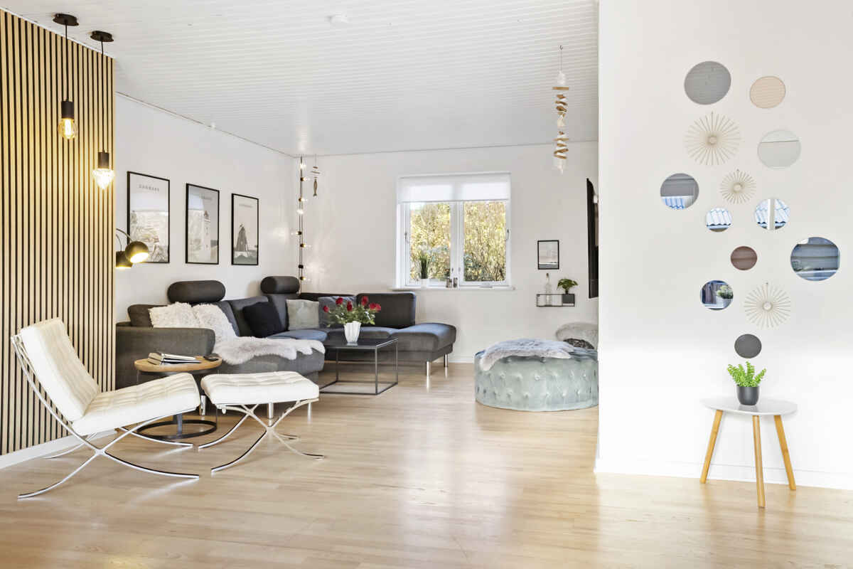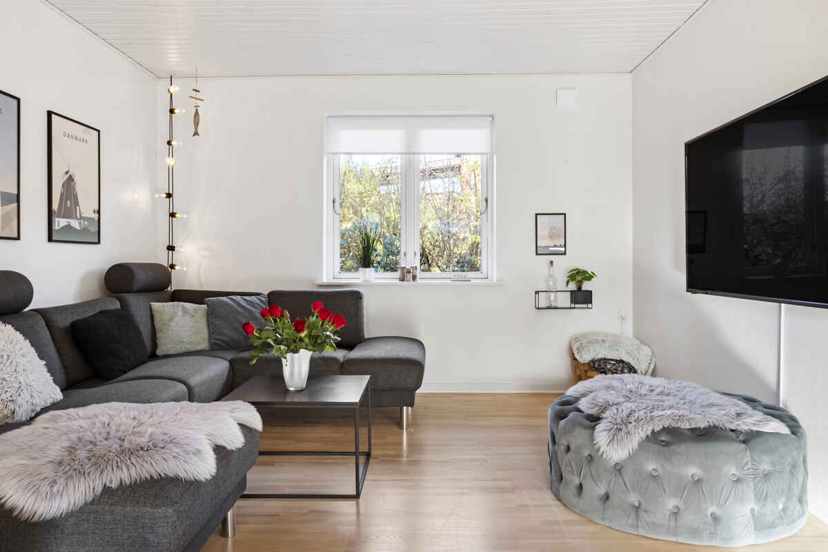 Stuen har moderne møblement, gratis high-speed internet (500/500) samt Smart-tv med Chromecast, hvor I har mulighed for at streame egne TV-tjenester. Der er også biopejs, der vil lune jer på en kølig sommeraften eller en efterårsaften med regn og rusk.
