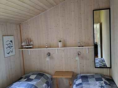 Det ene soverum er indrettet med 2 enkelt senge. I det andet en dobbeltseng. I det tredje en 3/4 dobbeltseng og i det fjerde en køjeseng som er egnet til børn, da loftshøjden er lav.