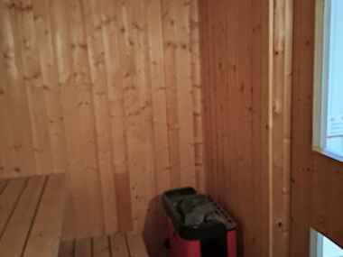I huset er der 2 badeværelser med toilet, håndvask og bruser. I det en badeværelse er der et spabadekar og en sauna.