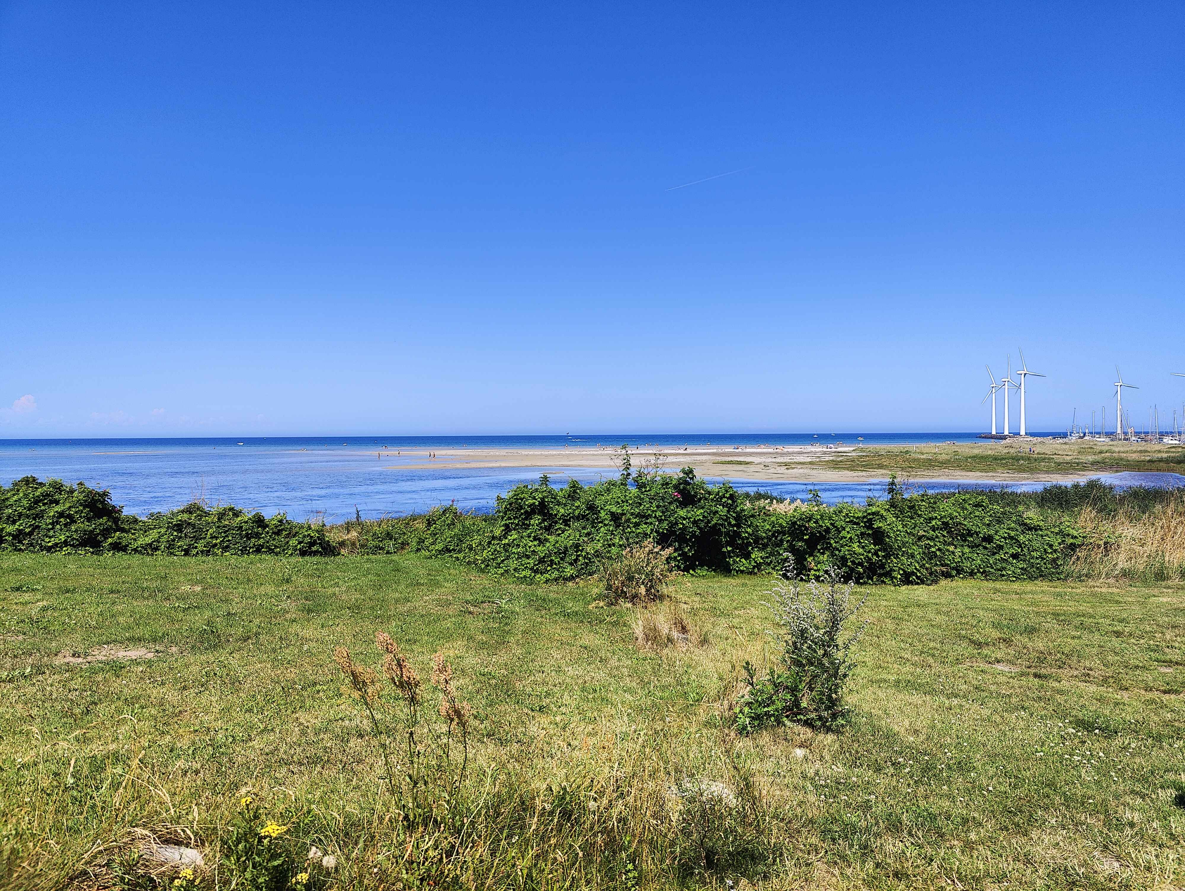 Området strækker sig mod kysten: kun cirka 200 m til en bred, børnevenlig sandstrand med blå flag og lavt vand. Fjellerup er kendt for vaffelbageri ved stranden og små lokale indkøbsmuligheder.