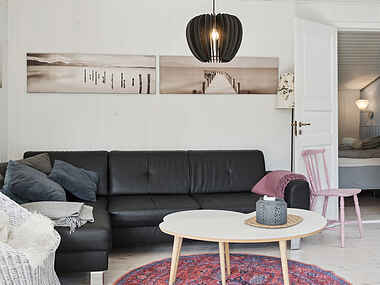 I huset samles I i det åbne fællesrum omkring køkken og spiseområde – perfekt til aftener med spil og måltider. Terrassen mod sydvest indbyder til grillaftener under åben himmel eller den overdækkede teresse.