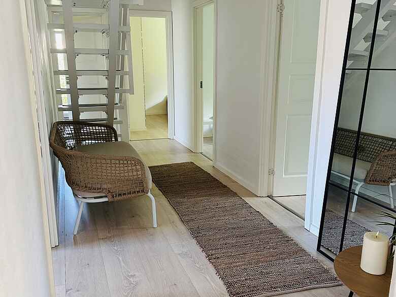 Der er 3 soveværelser på nederste etage, og hvis nødvendigt kan en af sengene flyttes op, så der er 4 rum. Dette giver også mulighed for at sove flere i huset, hvis nødvendigt. Ekstra madras kan stilles til rådighed, hvis det er nødvendigt.