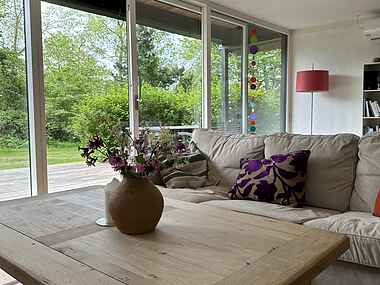 Huset er moderne indrettet, samtidig med at vi har forsøgt at bevare hyggen og sommerhusstemningen. Det lyse og rummelige køkken-alrum har store panoramavinduer mod syd, og køkkenet er særdeles veludstyret – vi kan lide at lave mad.
