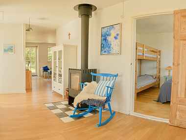 Sommerhuset har to soveværelser med komfortable senge, der sikrer en god nats søvn. Med plads til syv personer er huset ideelt til både små og store familier. Stuen er rummelig med plads til samvær og hygge.