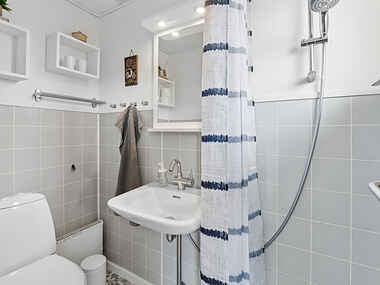 Huset har 2 soverum,et lille men funktionelt badeværelse, køkken og opholdsrum i et.