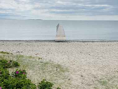 Der er kun 0,5 km til stranden med badebroer og lavt vand – også ideelt for børn. 5 km syd for ligger tilmed Østjyllands berømte Saksild Strand, ligeledes sandstrand med yderst børnevenligt vand.