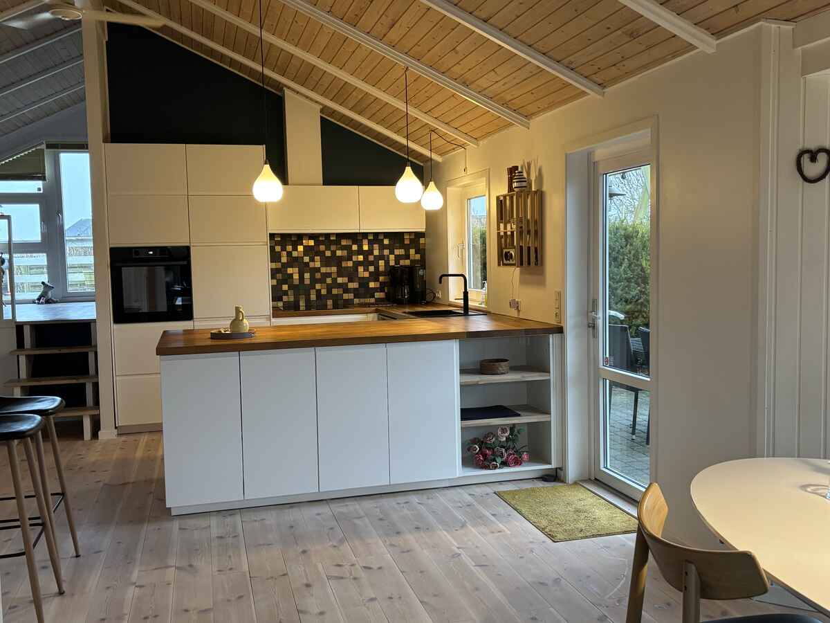 Efter en dag med aktiviteter og udforskning kan I vende tilbage til det hyggelige sommerhus og slappe af på terrassen, hvor I kan nyde solnedgangen over havet, eller forkæle jer selv med en tur i saunaen, hvor afslapning og velvære venter. I stuen kan I slappe af i komfortable møbler og nyde en film på fjernsynet med Chromecast-streaming.