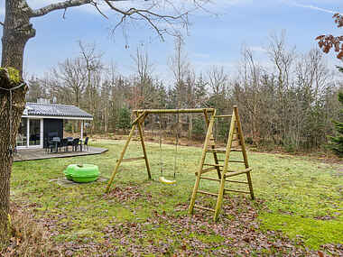 Sommerhuset er ideelt placeret tæt på vandet, og kun 800 meter fra stranden kan I hurtigt tage en forfriskende dukkert eller en afslappende gåtur langs kysten. For de aktive familiemedlemmer er der en stor fælles legeplads med boldbaner lige i nærheden, hvor børnene kan lege og spille fodbold.