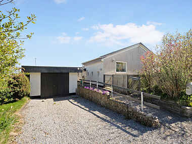 Den eventyrlige grund fordeler sig i flere niveauer, hvor børn kan tumle på den bløde græsplæne og finde ribs blandt buskene, mens I nyder et glas vin på en af de mange terrasser. Huset ligger højt på grunden, hvilket giver en smuk udsigt over landskabet og fjorden.