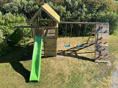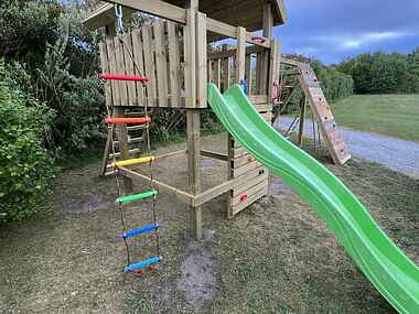 Og for børnene er der etableret legetårn med rutsjebane og gynger samt et fodbold-/håndboldmål. Derudover er der store græsarealer til leg og aktiviteter til både børn og voksne samt hunde.