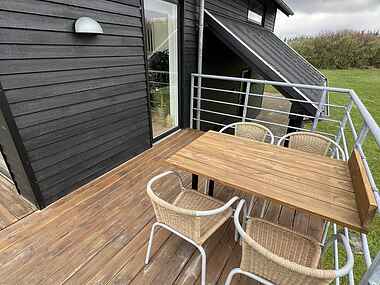 Drømmer du om en ferie i naturskønne og meget fredfyldte omgivelser med en fantastisk flot udsigt og en stor himmel? Så er dette sommerhus på 134 m² fordelt på 4 forskudte plan det perfekte valg for dig! Huset byder på en stor stue med panoramavinduer og svæveterrasser, et stort køkkenalrum i forbindelse hermed på niveauet over, med udsigt ud over stuen og en tilhørende 25 m² stor tagterrasse med et havebordbord med 6 pladser. I køkkenet eller på den tilhørende tagterrasse kan du nyde måltiderne med en betagende udsigt over landskabet, eller følge med i børnenes leg. I stueplan er der en lækker overdækket terasse med loungesofa og et mindre havebord med 4 pladser. Derudover byder huset på 3 soverum, 2 badeværelser samt et stort indgangs-/bagrum, hvor der bl.a. er optimale forhold, hvis du har behov for ”hjemmearbejde”. Her er der et elektrisk hævesænkebord, 2 skærme, headset mm. Desuden er der 65” OLED-TV i stuen samt TV i alle 3 soverum. Samtlige TV er udstyret med Chromecast/Google TV hvor du har mulighed for at caste fra din egne enheder.