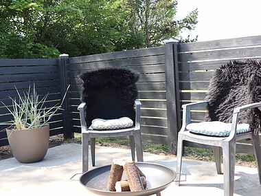 Stort badeværelse med spabad og udgang til gårdhave. Fyrrum med vaskesøjle samt udgang til ældre garage.