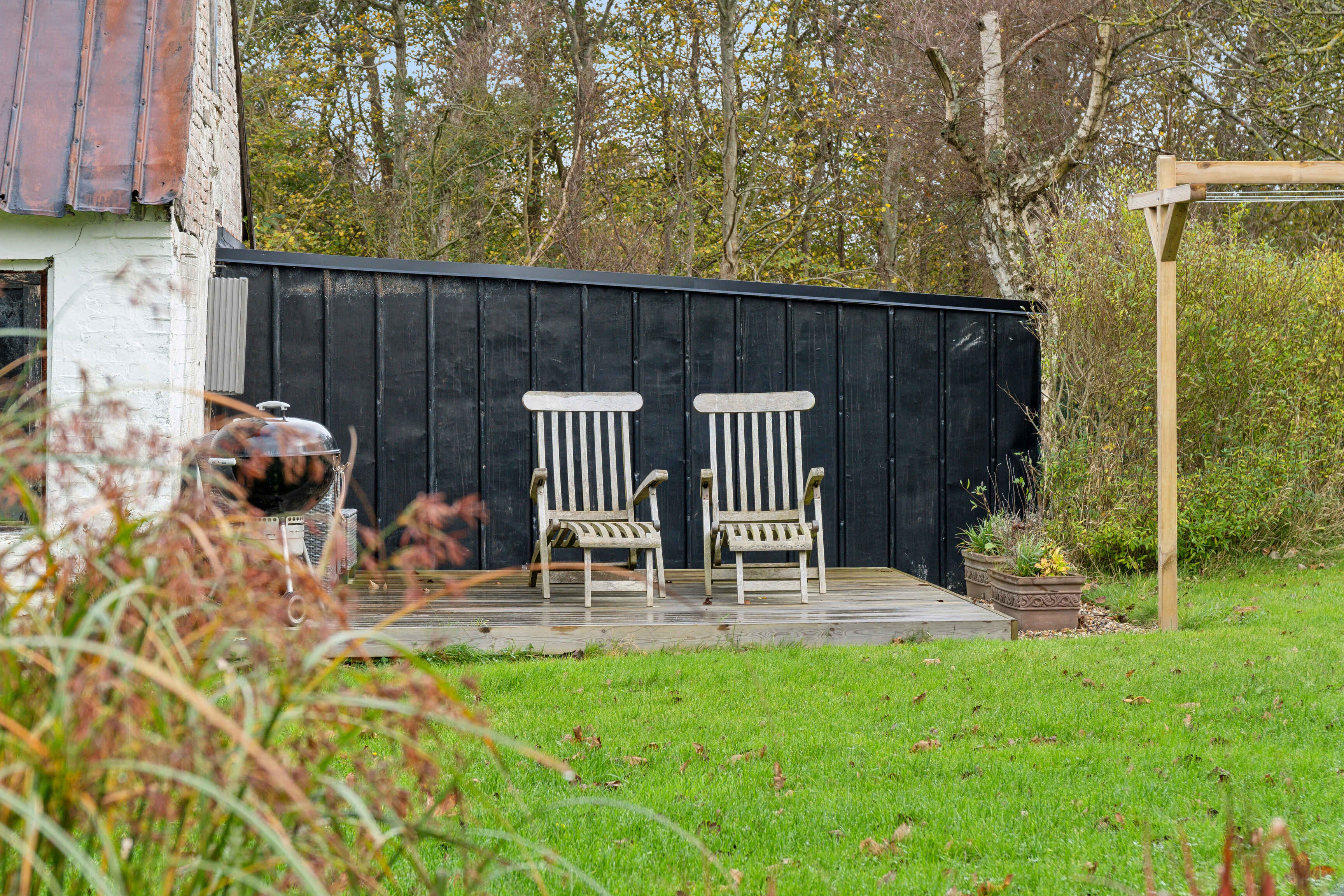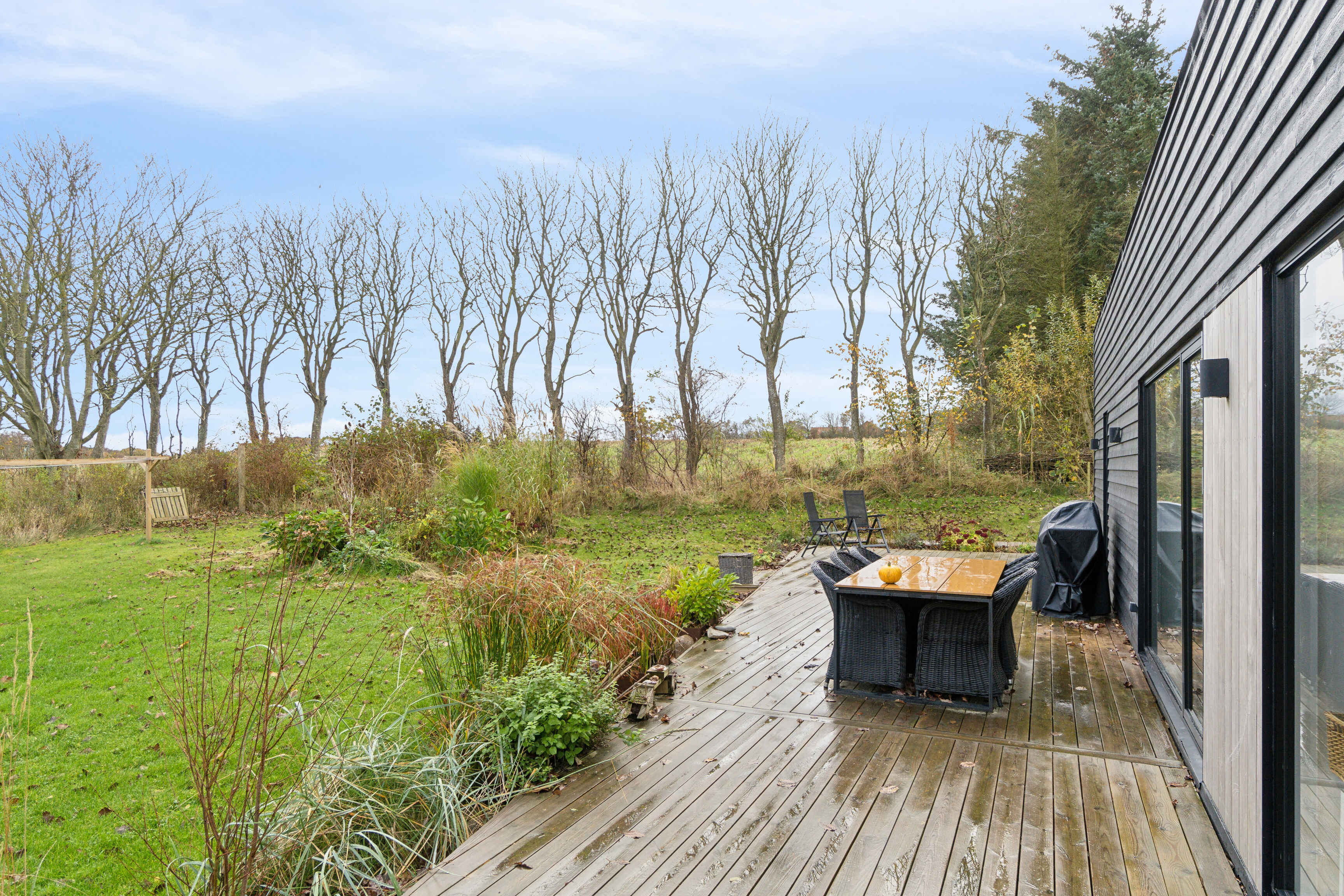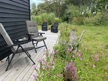 Huset har en indhegnet have og en stor træterrasse, hvor der er masser af plads til udendørs leg og hygge. Børn, voksne og hunde kan nyde de mange hyggekroge.