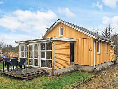 Dette mindre feriehus rummer 60 m², ét hyggeligt soveværelse og plads til fire personer. Den indbydende stue åbner sig mod en udestue, hvor udsigten mod Lyngs Drag skaber stemning. Fra huset er der blot 300 meter til vandet og naturen udenfor.