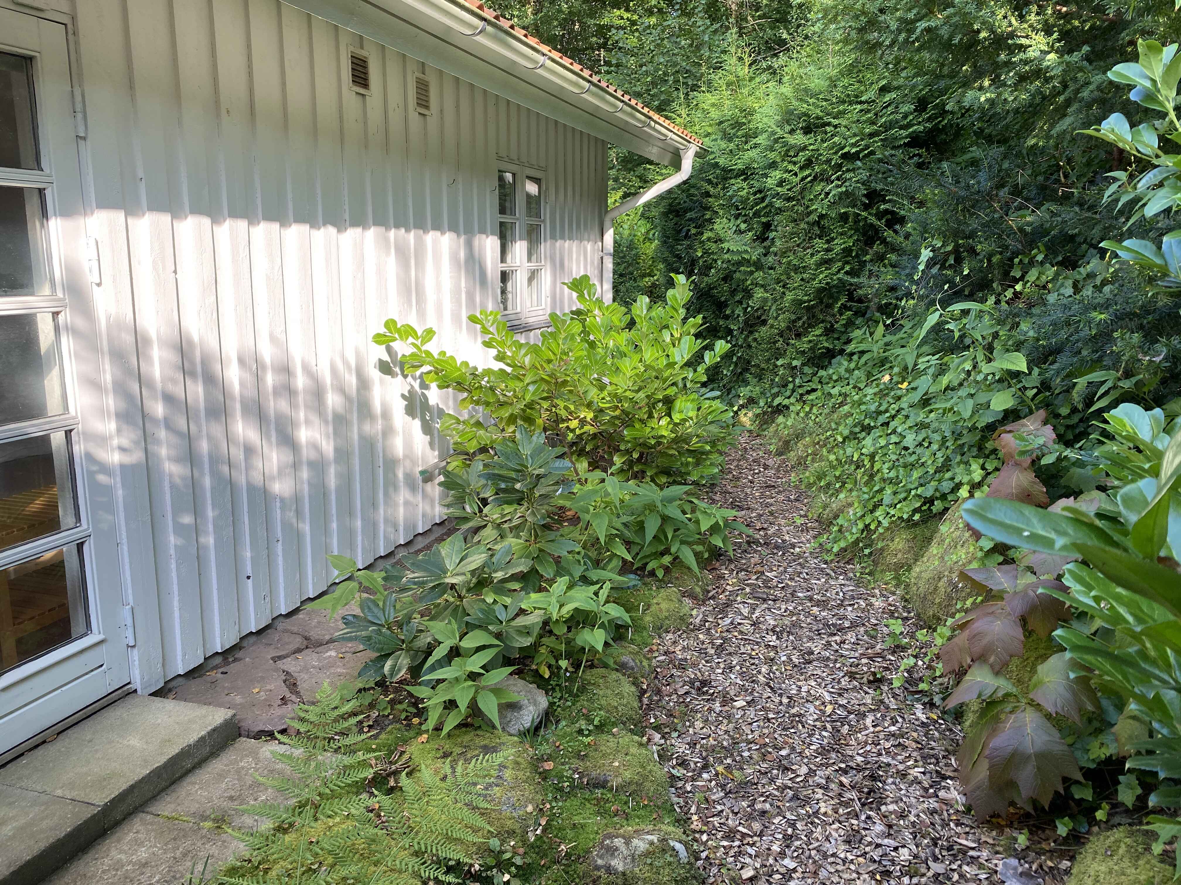 Der er en dejligt terrasse til udeliv og noget udenomsplads med vild natur, hvor der er mulighed for at benytte et bålfad.