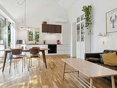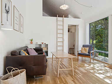 Den energivenlige varmepumpe sørger for behagelig temperatur året rundt. Der er også internet, så I kan holde kontakten eller streame under afslappende stunder indendørs.