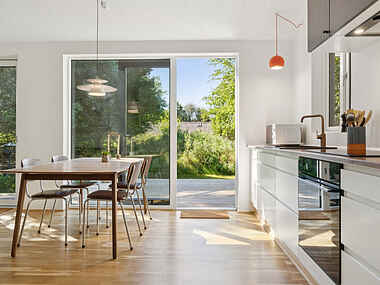 Huset ligger på en fredelig naturgrund omgivet af skov. Her er rig mulighed for at nyde naturen, enten på terrassen eller med en gåtur i de smukke omgivelser.