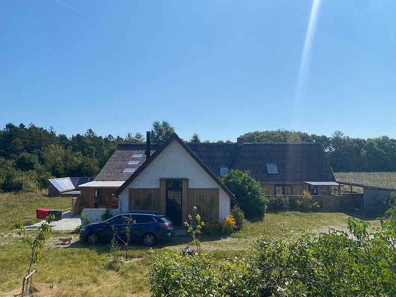 Dejligt beliggende tidligere landejendom udlejes som feriebolig. Ejendommen er beliggende på ca. 90.000m2 stor naturskøn grund med mark og skov. Der er desuden gåafstand til stranden. (Ca. 12min). Forestil jer at vågne op til fuglesang og kigge ud over den store private naturgrund – et grønt eventyrland, hvor børn kan løbe frit mellem træer, lege gemmeleg i skovlunde og bygge huler under trækronerne. De voksne kan nyde roen og udsigten ud over det kuperede landskab.