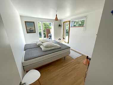 Køkken og stue er i forskudte plan, hvilket skaber en unik og hyggelig atmosfære. Det moderne køkken er fuldt udstyret med alt, hvad I behøver for en bekvem ferie. Den lyse indretning og de åbne rum skaber en afslappet stemning, og med både varmepumpe og brændeovn er huset behageligt året rundt. Der er naturligvis fri internetadgang, så I nemt kan holde forbindelsen – eller streame en film efter en dag i naturen.