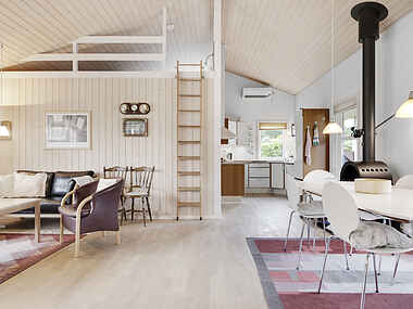 Opholdsstuen er hjertet i huset, indrettet med behagelige lædersofaer og stole. Sommerhuset har et TV med parabol til tyske kanaler, derudover er der også DVD’er som kan benyttes. I køkkener mangler der intet. Fuldt udstyret med moderne hårde hvidevarer, så madlavningen bliver en leg.