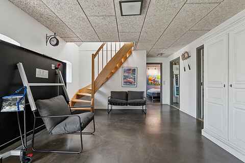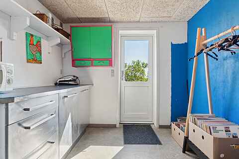 Huset har moderne faciliteter, er energivenligt med jordvarme samt ny brændeovn. Derudover opvaskemaskine og vaskemaskine … og et bordtennisbord.