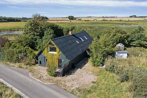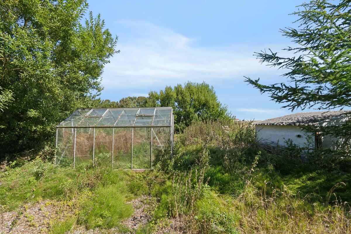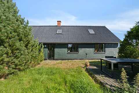 Sommerhuset ligger på en stor, naturskøn grund på 9.902 m2, som byder på ro, privatliv og masser af natur. Her kan man nyde ferien i afslappende omgivelser.