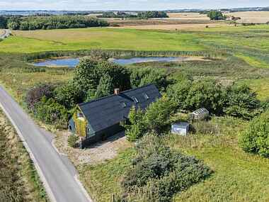 Sommerhuset ligger på en stor, naturskøn grund på 9.902 m2, som byder på ro, privatliv og masser af natur. Her kan man nyde ferien i afslappende omgivelser.